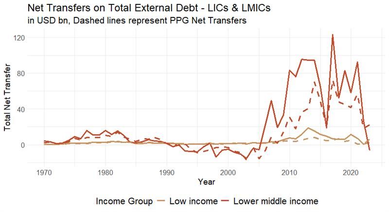 In 2023, the global financial system witnessed a striking reversal. For the first time in over a decade, lower- and middle-income countries (LMICs) experienced negative net financial flows on external debt, amounting to -$7 billion. The reversal of financial flows from lower- and middle-income countries (LMICs) to developed countries, is a moment of reckoning for global development finance.